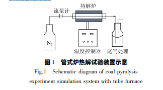 管式爐熱解試驗裝置如圖 1 所示。從 3 個礦區 分別采取一定量煤樣,每個地區的樣品分為 3 組,原 煤經破碎、篩分,取一定量粒度為 5~10 mm 的煤樣, 裝填于不銹鋼熱解爐內,再將熱解爐置于管式電阻 爐中,在氮氣氣氛下,將實驗室熱解爐加熱到 600、 750 和 900 ℃的目標溫度( 升溫速率 3 ℃ /min) 。將 熱解后的產物破碎、研磨至 0.2 ~ 0.3 mm 后,進行液 氮試驗,采用 ASAP2020M 型比表面積孔徑分布測 定儀,該儀器借助氣體吸附原理( 典型為氮氣) ,可 用于確定比表面積、孔體積、孔徑、孔分布、等溫吸附 和脫附的分析。