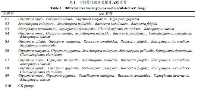通過美國國際叢枝菌根真菌種質資源保藏中心 購得相應的 AM 真菌純凈菌劑,其菌劑由三峽庫區道 地藥材綠色種植與深加工重慶市工程實驗室(重慶三 峽學院)進行擴增繁殖、儲存保管。接種菌劑為帶有 孢子、菌絲及侵染后根段的栽培基質,見表 1。